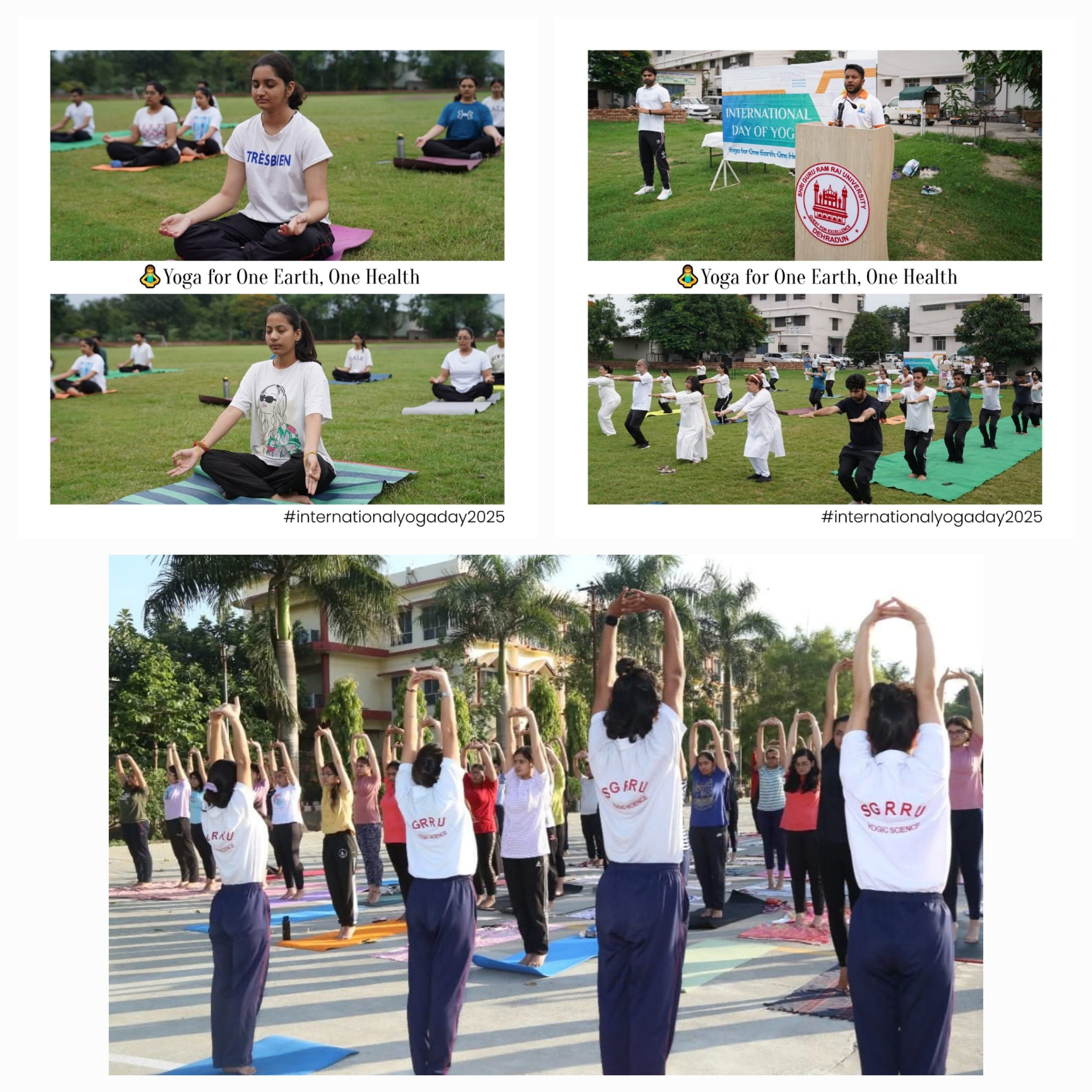 श्री गुरु राम राय विश्वविद्यालय देश विदेश में योग की अलख जगा रहा है। श्री गुरु राम राय विश्वविद्यालय के माननीय अध्यक्ष श्रीमहंत देवेन्द्र दास जी महाराज के आशीर्वाद, प्रेरणा व मार्गदर्शन से श्री गुरू राम राय विश्वविद्यालय, के स्कूल ऑफ योगिक साइंसेस एंड नेचुरोपैथी के छात्र-छात्राएं राष्ट्रीय व अन्तर्राष्ट्रीय स्तर पर अपनी प्रतिभा का लोहा मनवा रहे हैं। अन्तर्राष्ट्रीय योग दिवस के अवसर पर विश्वविद्यालय के छात्र-छात्राओं ने विश्वविद्यालय के योग मैदान पर योगासन लगाए और आमजनमानस के बीच योग की महत्वता की अलख जगाई।