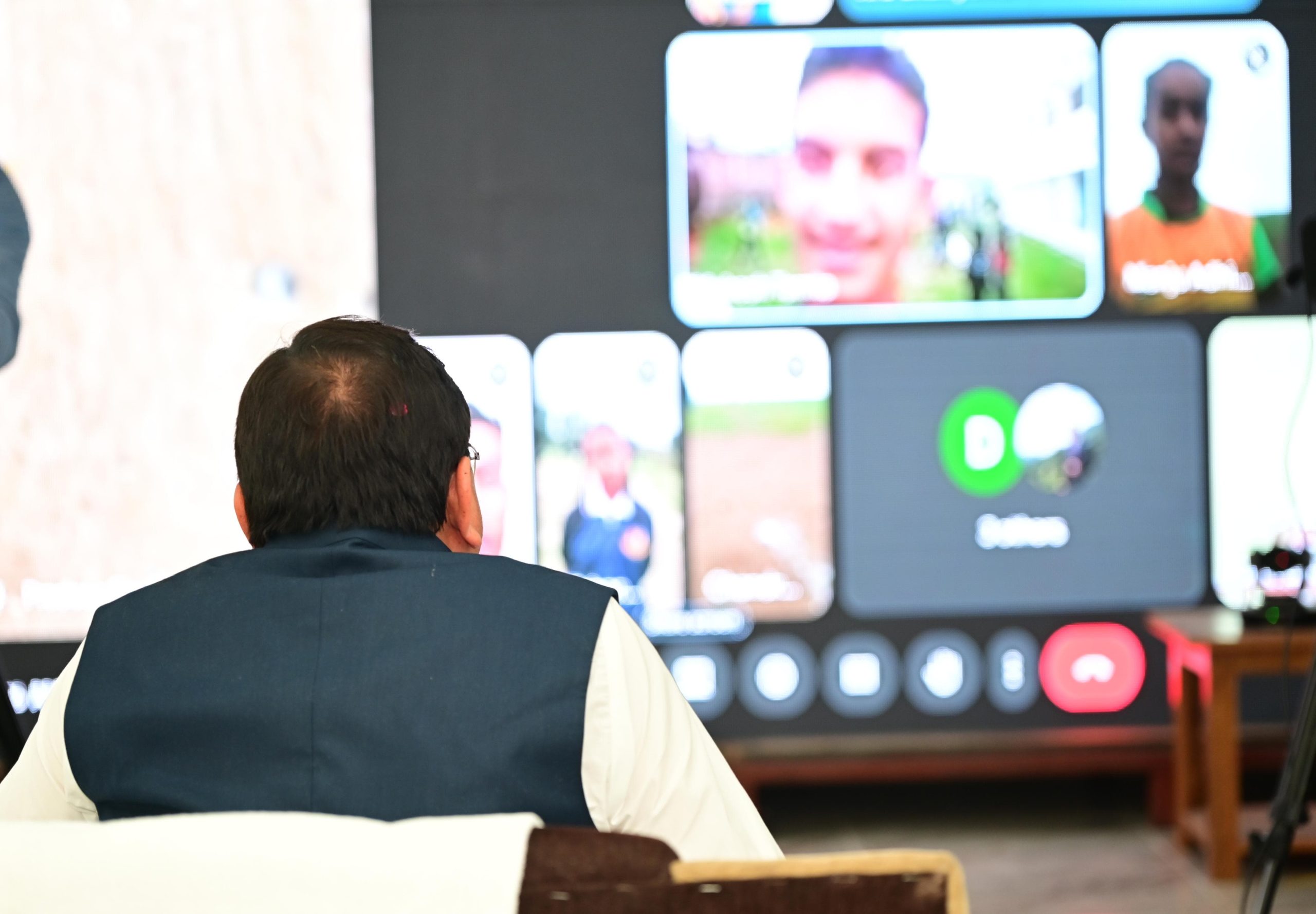 मुख्यमंत्री श्री पुष्कर सिंह धामी ने शनिवार को पर्यटक आवास गृह, टनकपुर से वीडियो कॉन्फ्रेंसिंग के माध्यम से चम्पावत जनपद के विभिन्न विद्यालयों के छात्र-छात्राओं से बाल संवाद कार्यक्रम के अंतर्गत सीधा संवाद स्थापित किया। कार्यक्रम का उद्देश्य विद्यालयों में खेल गतिविधियों की प्रगति की जानकारी प्राप्त करना तथा खिलाड़ियों से उनकी आवश्यकताओं और सुझावों पर चर्चा करना रहा।